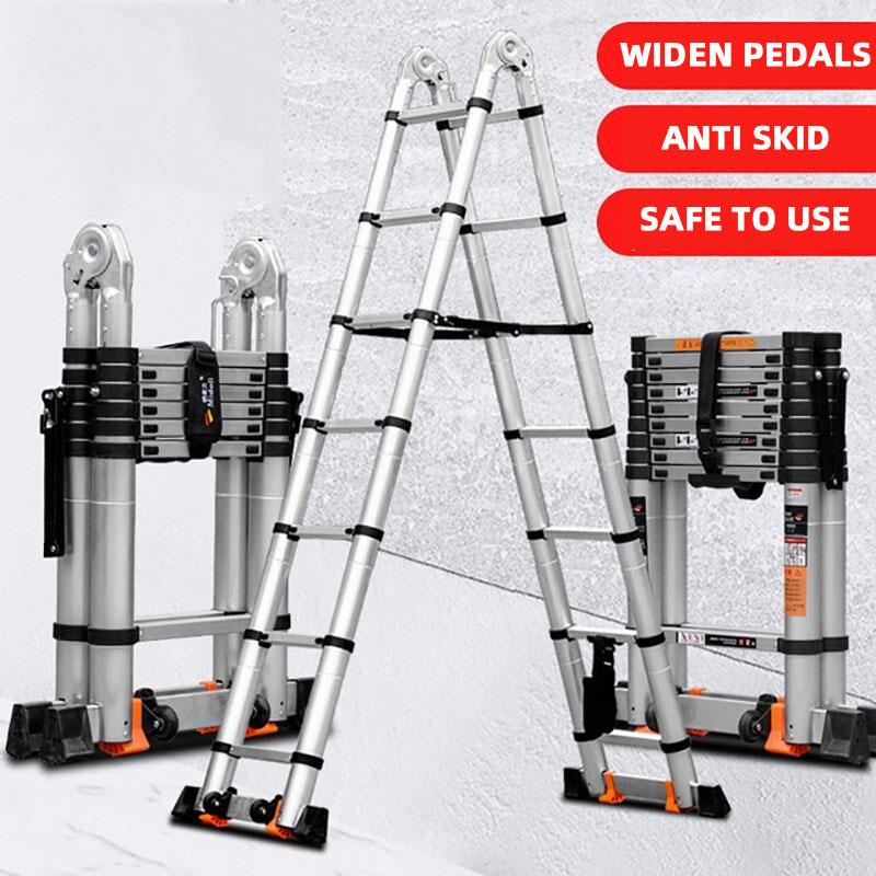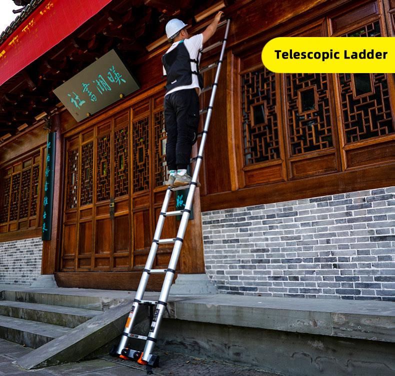 【PREMIUM MATERIAL】The Telescopic Extension Ladder is crafted from high-quality aluminum alloy. It’s lightweight and easy to carry without sacrificing strength.