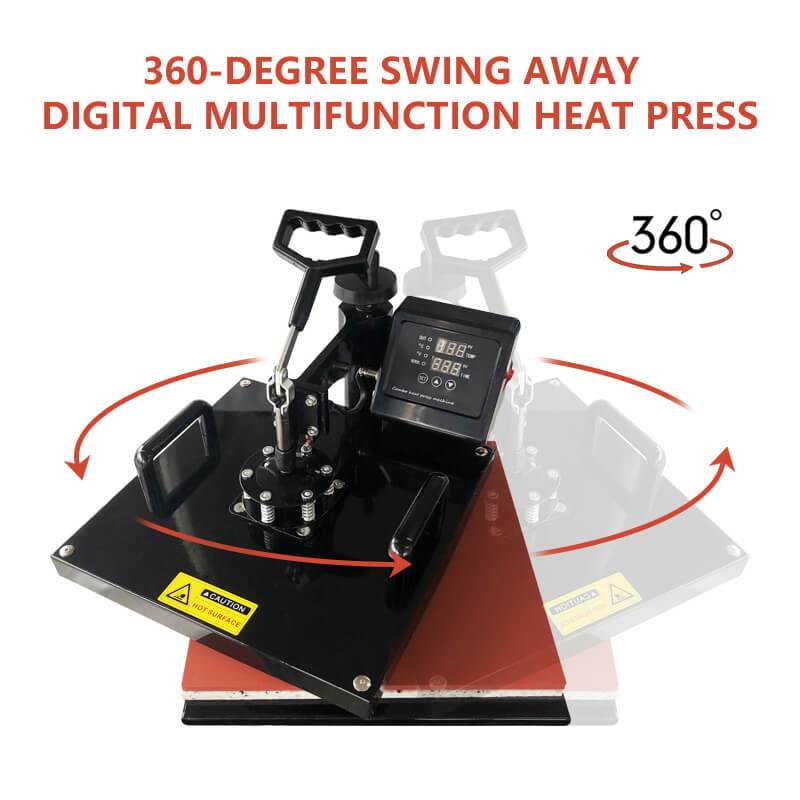 The fully 360-degree rotation swing-away arm makes the pressure to be applied directly and evenly on the T-shirt press, improving the transfer quality. Meanwhile, it allows the heating element to be moved safely aside, reducing the chances of accidental contact.
