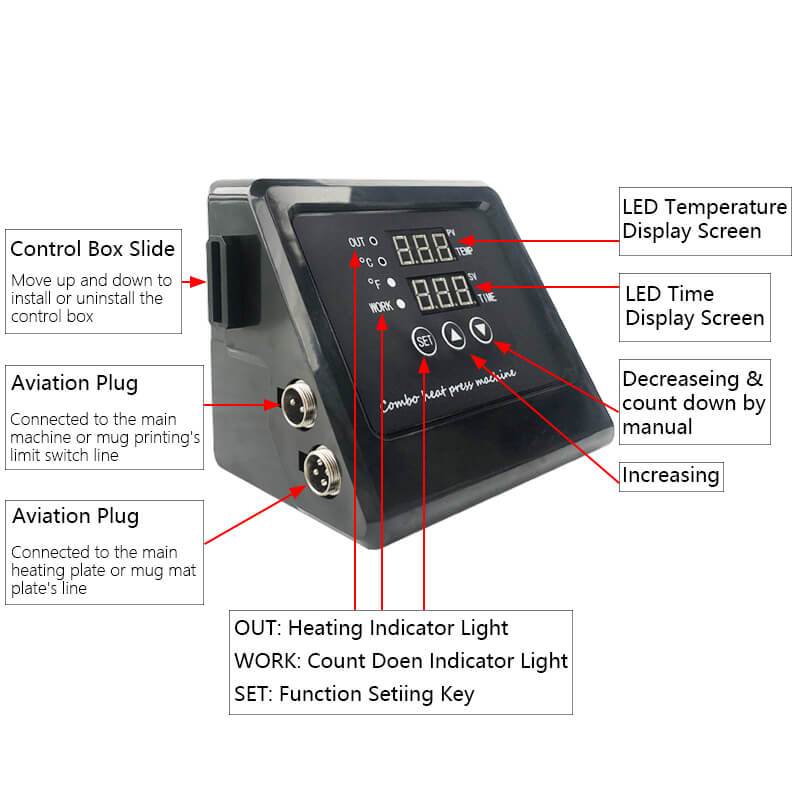 LED screen display, easy to operate, precise control. Counting function, three modes can be switched freely, the heat press 12” x 15” transfer printing machine has memory function, easily set and store data, no need to set parameters repeatedly.
