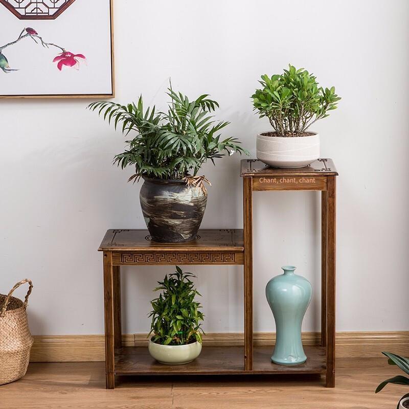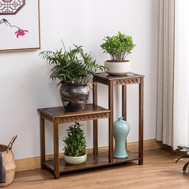 Antique Shelf Flower Rack New Chinese Simple Office Flower Table Antique Vase Rack Living Room Floor Storage Walnut Antique Combination