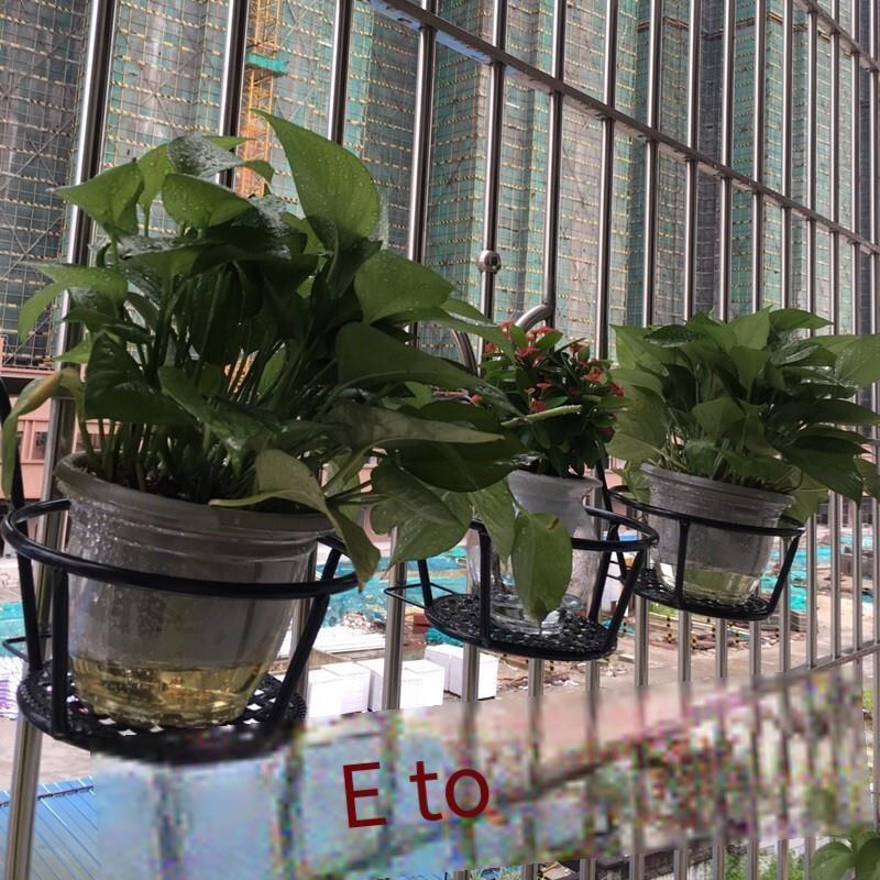 Balcony Flower Rack Hanging Railing Windowsill Single Flower Rack Protective Fence Hanging Flower Pot Indoor Shelf Decoration Shelf Hanging Blue-green Basket Flower Rack Large Single Black