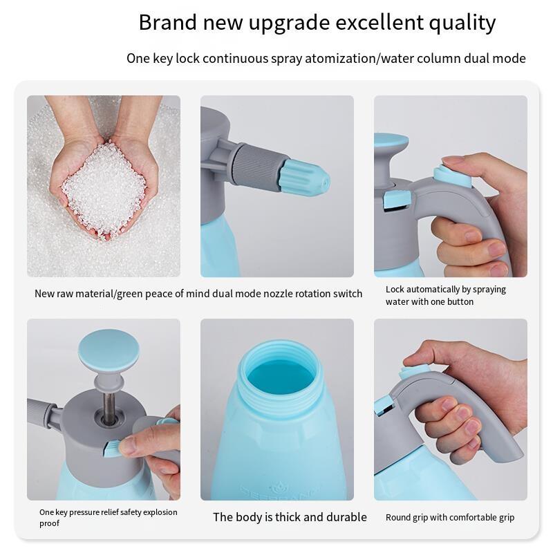 1.High quality PP+PVC plastic, durable, adjustable sprinkler, adjustable spray size2. Hand pressure type design, gently press, you can spray water, watering flowers watering grass, cleaning housework are easy to use
