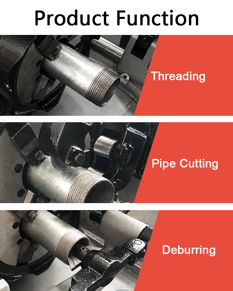 ECVV Pipe Threading Machine is suitable for cutting, threading and reaming 1/2"-4" in water, electricity and gas pipes. Besides having dexterous and compact structure, artistic appearance, simple operation and high efficiency, it is characterized by an automatic profiling device, a dependable clamping apparatus and a distinctive oiling system. Therefore, if adopting the threader, you would assure to prolong the life of dies, protect the pipe from deformation and slipping, and obtain a high-quality standard taper pipe thread. It is an ideal machine for raising efficiency, ensuring the quality of projects and reducing labor intensity in pipe installation. It has been widely applied in installing and building industries.