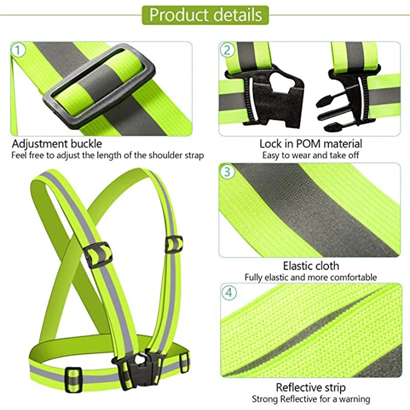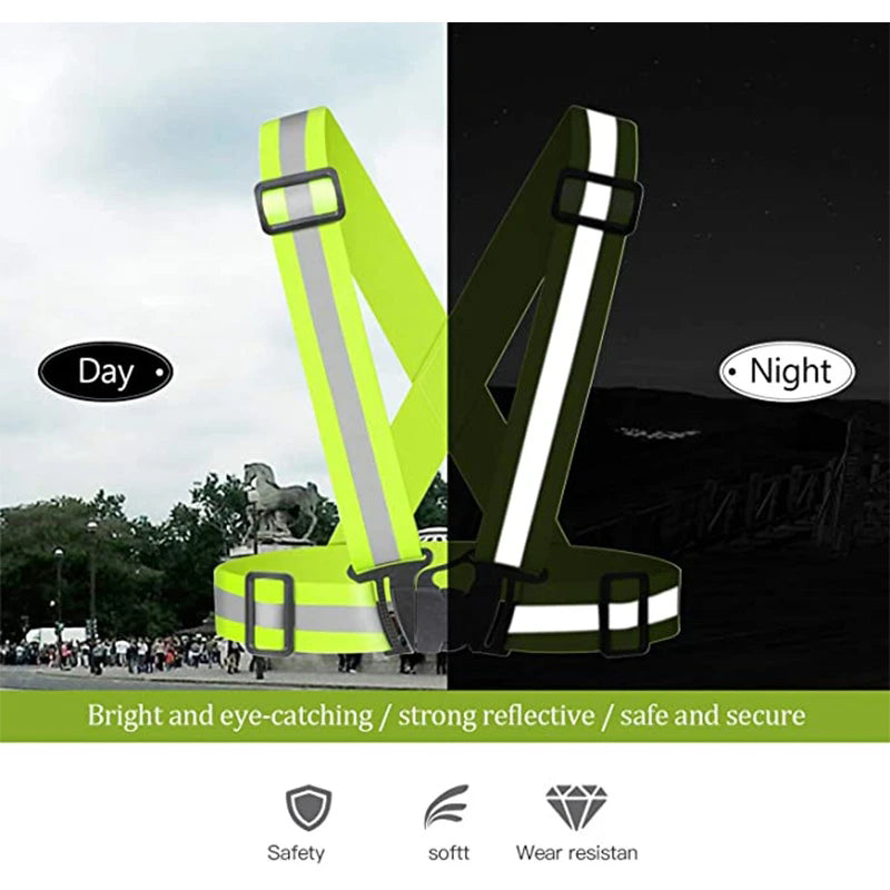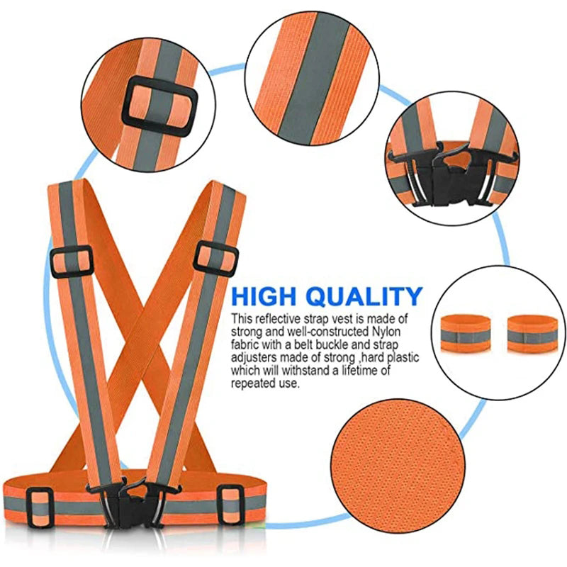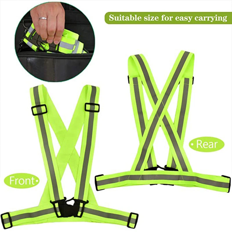 ECVV Reflective Safety Vest Safety Straps Adjustable Safety Reflective Visibility Striped Vest Jacket Highlight For Night Riding Cycling Sports