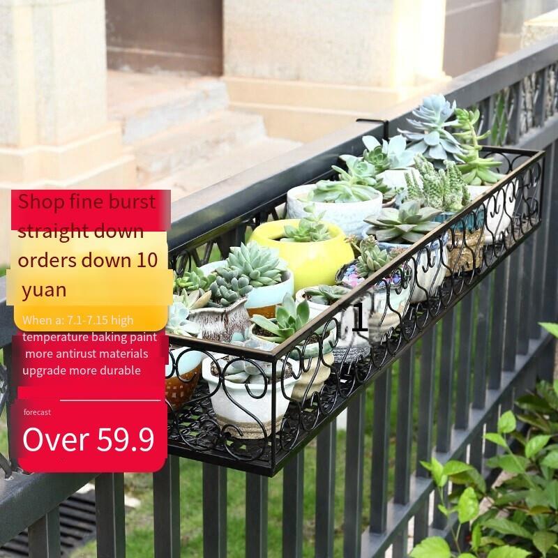 European Balcony Flower Rack Flower Pot Iron Railing Multi-layer Hanging Flower Pot Rack Wall Hanging Green Pineapple Fleshy Flower Rack