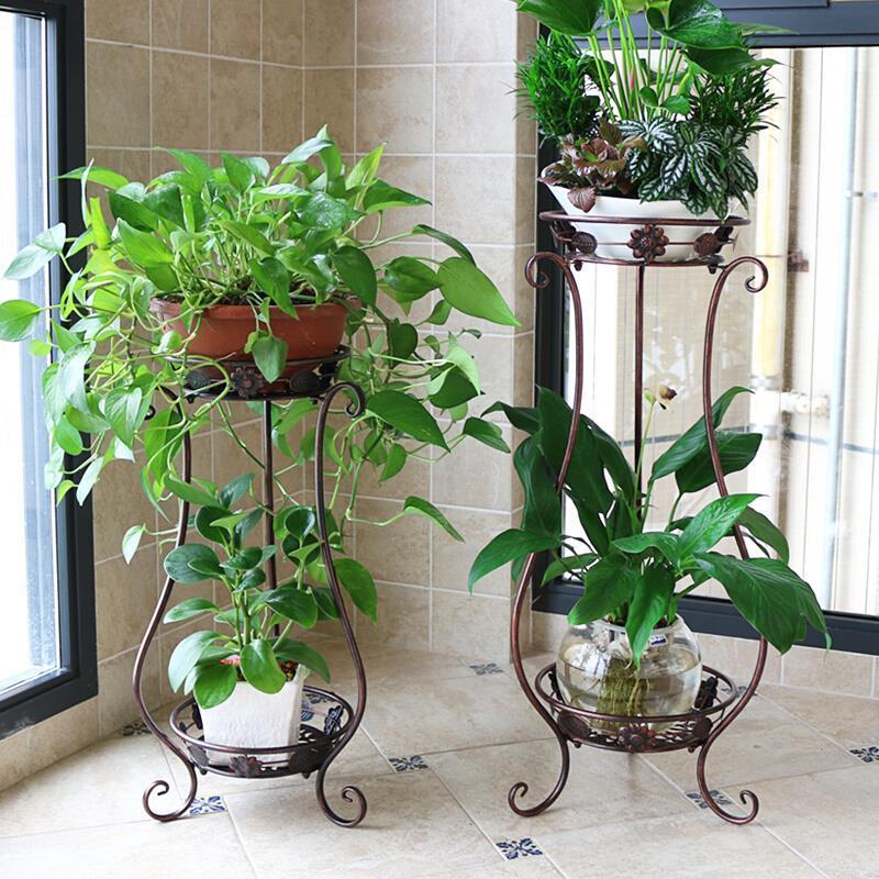 European Iron Flower Rack Multi Floor Balcony Indoor Living Room Flower Rack Green Luo Hanging Orchid Pot Rack White Trumpet