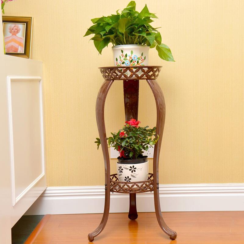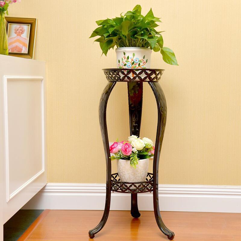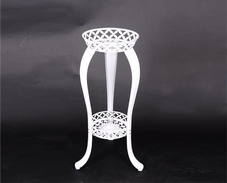 European Iron Flower Rack Multi-storey Living Room Indoor And Outdoor Green Rose Hanging Orchid Pot Rack Green Rose Double-layer Widening And Thickening White (height 82cm)