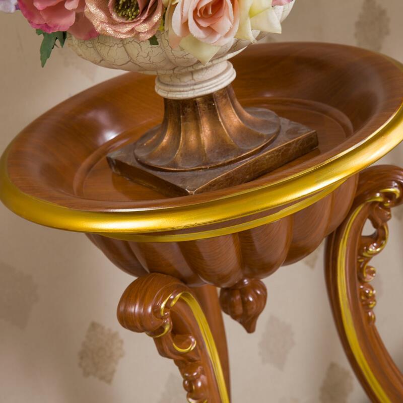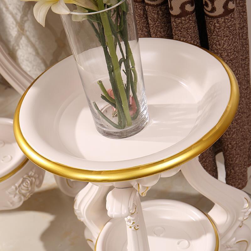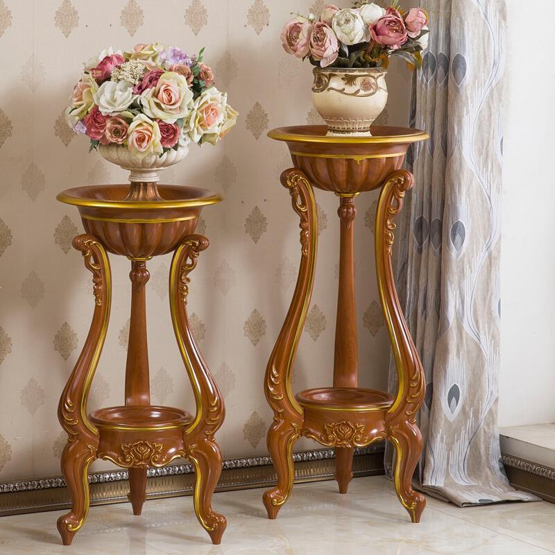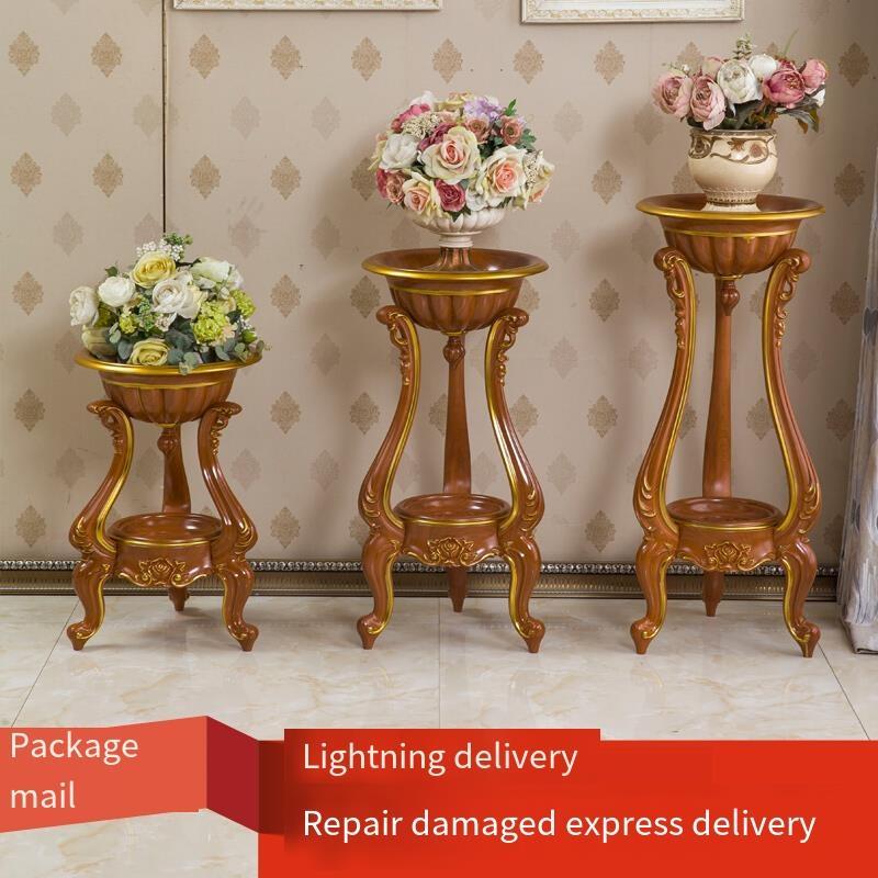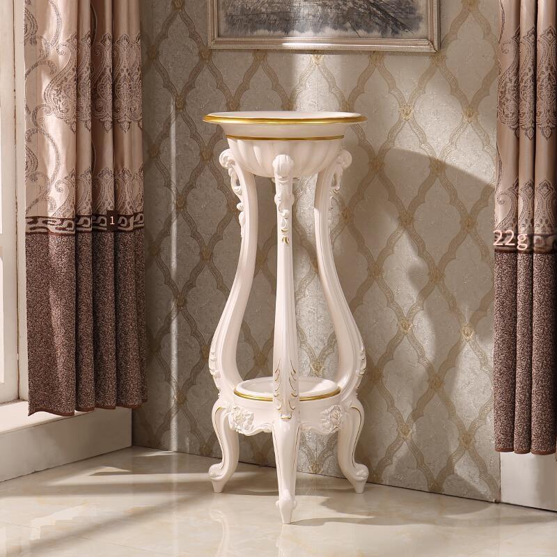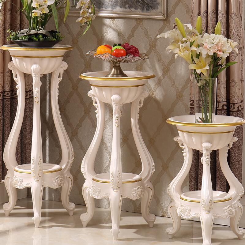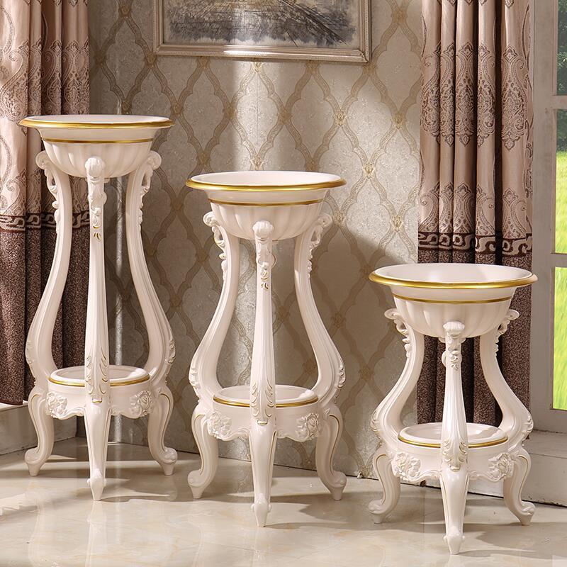 European Style Flower Rack Imitation Solid Wood Grain Indoor And Outdoor Hanging Basket Green Rose Pot Rack Waterproof Layer Living Room Storage Package Mail Price White Round 61cm High (single Piece) Ivory White Gold Painting