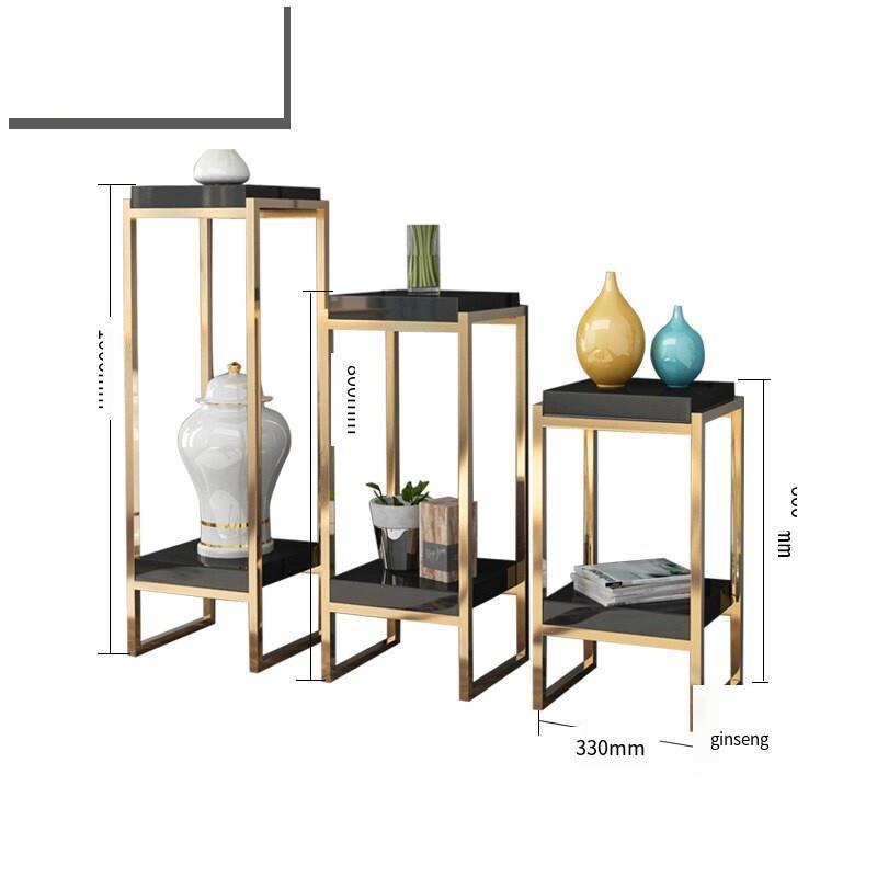 Flower Rack Modern Simple Stainless Steel Indoor Living Room Floor Mounted Multi-storey Flower Pot Rack Black Light Luxury Decorative QS-905 Black Medium: 0.8m