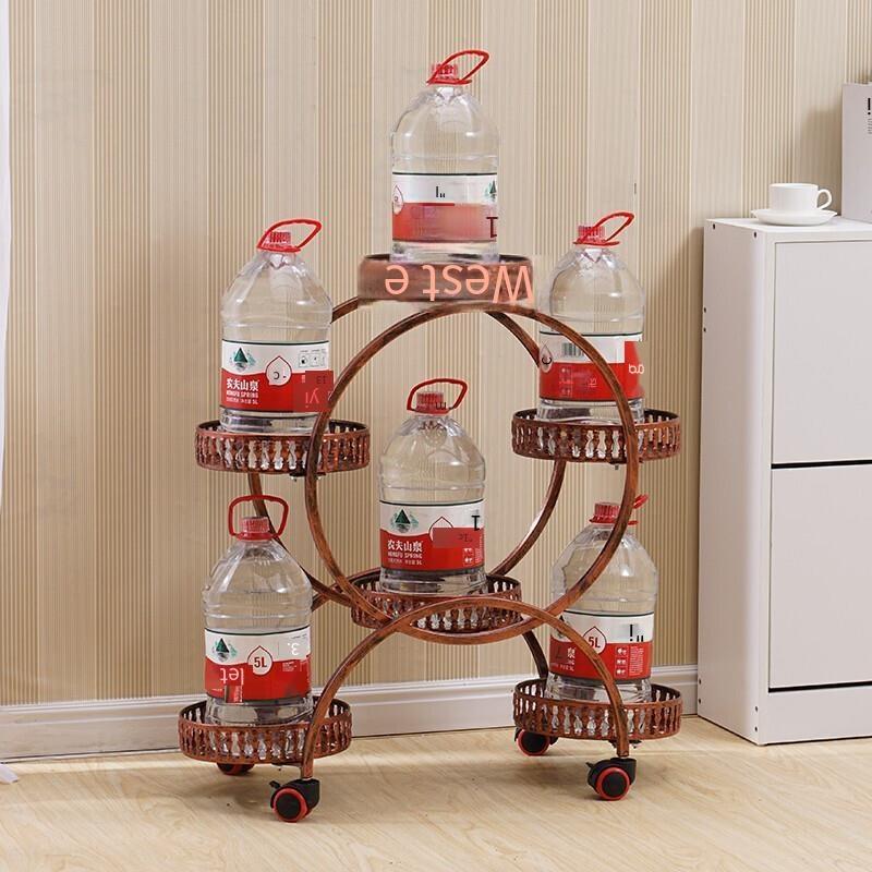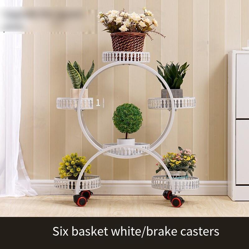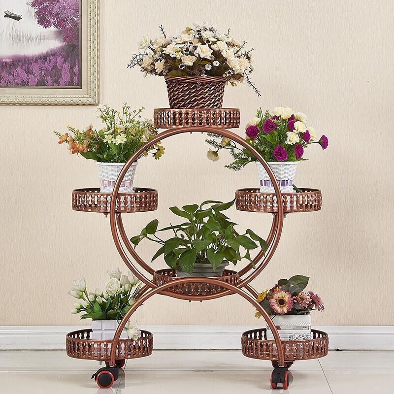 Flower Rack Multi-layer Indoor Space Saving Iron Multi-layer Balcony Storage Rack Living Room Belt Wheel Flower Pot Rack Red Copper 6 Basin Luxury Version (brake Universal Wheel)