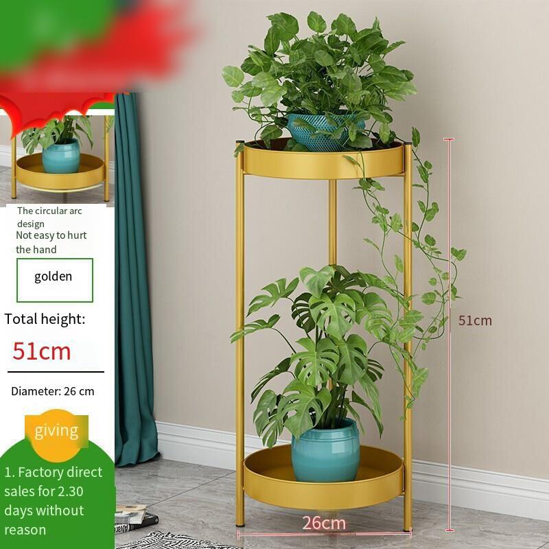 Flower Rack Multi-storey Indoor Living Room Nordic Light Luxury Gold Flower Pot Rack Floor Shelf Window Balcony Decoration Iron Art Simple Fleshy Green Pineapple Flower Pot Rack H9250 [51cm High]