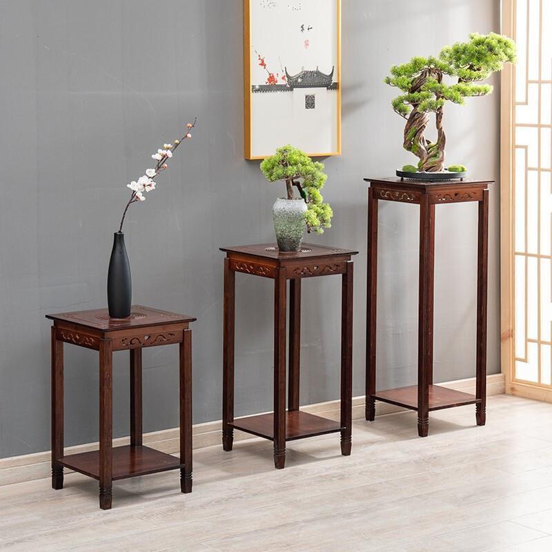 Flower Rack Nanzhu Solid Wood Flower Rack Bonsai Rack Balcony Multi-layer Meat Flower Table Chinese Living Room Antique Decoration Rack Yunxin Flower Table Regular Small