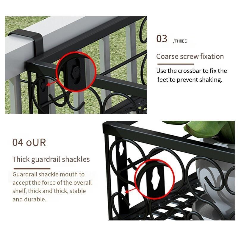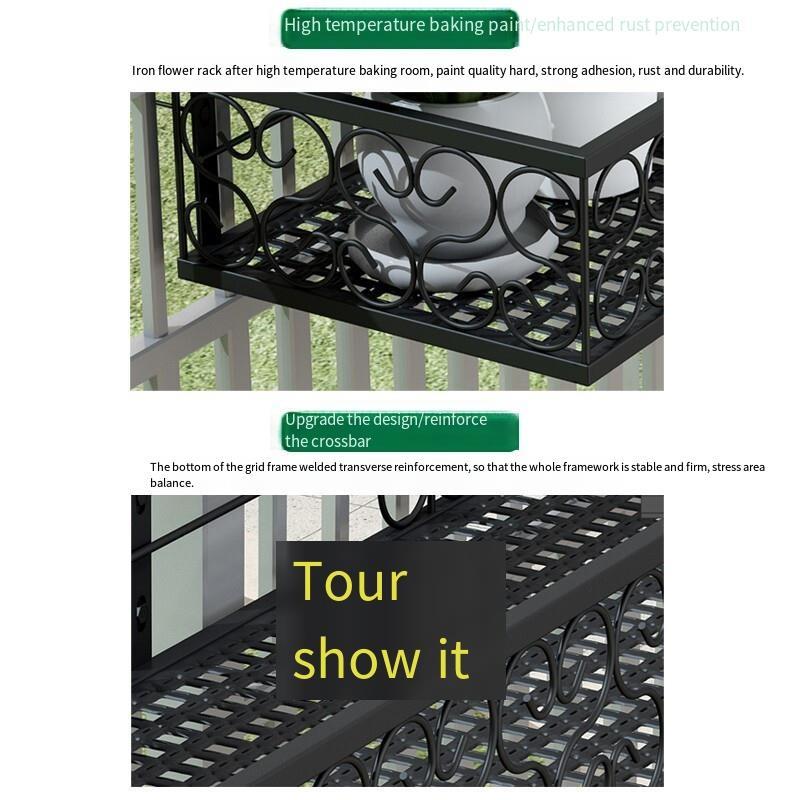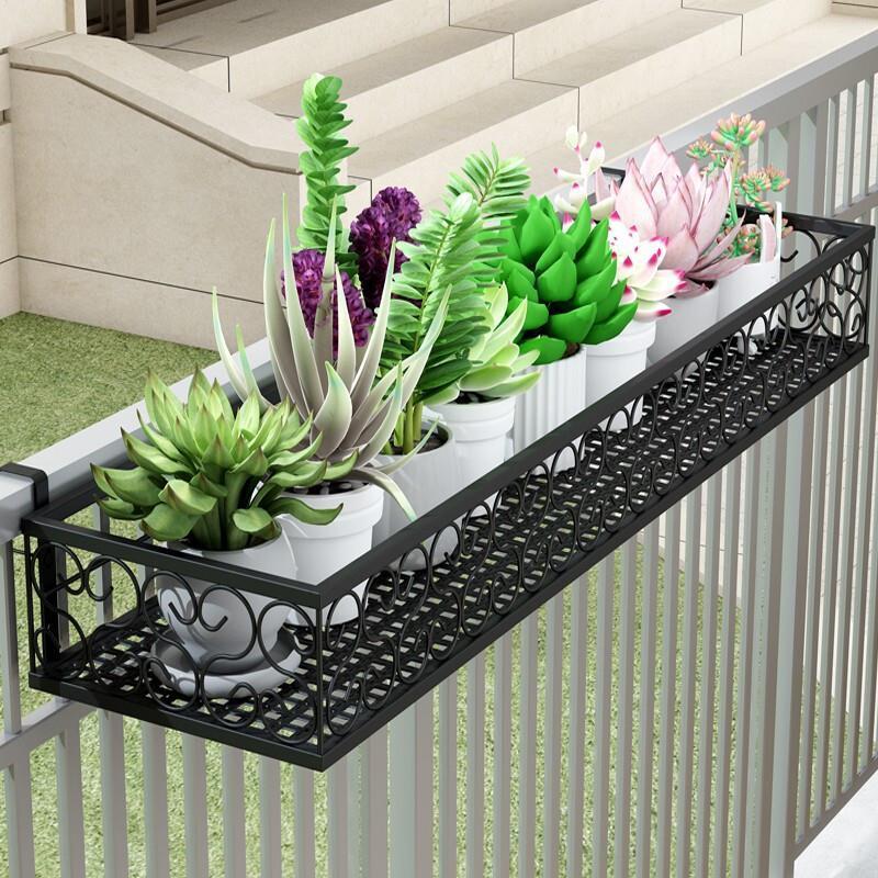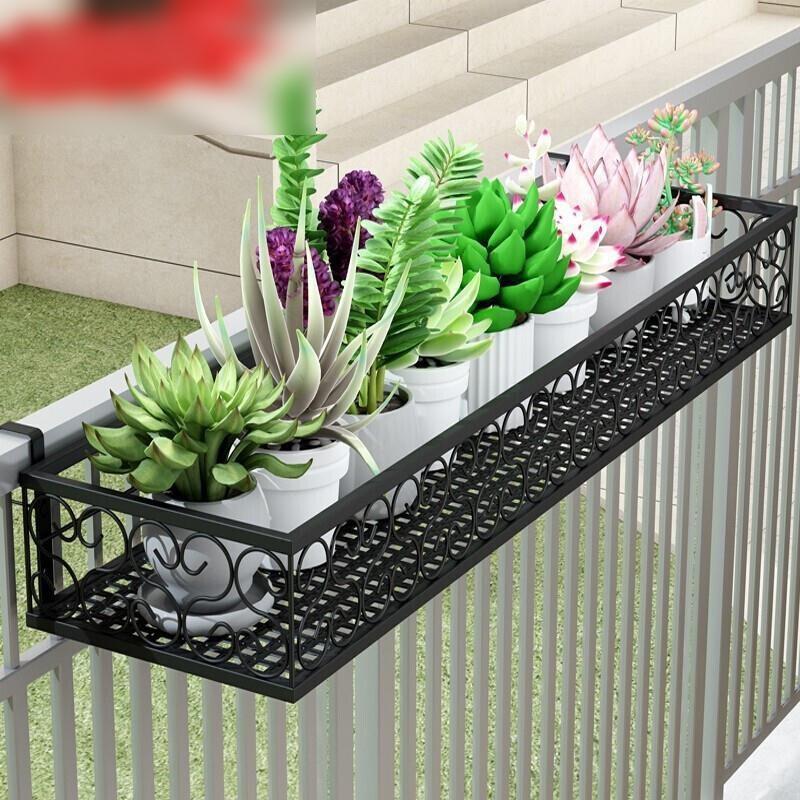 Flower Rack North European Balcony Bold Reinforced Non Perforated Iron Railing Multi-layer Hanging Partition Flower Pot Rack Wall Hanging Green Pineapple Fleshy Length 60cm Width 20cm Height 11.5cm