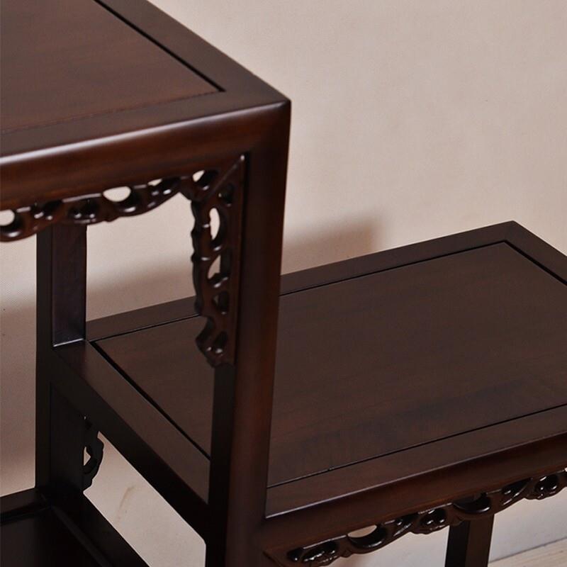 Flower Rack Solid Wood Flower Pot Rack Indoor Elm Fish Tank Rack High-low Conjoined Antique Chinese Flower Table Boutique Full Solid Wood [chestnut Red]