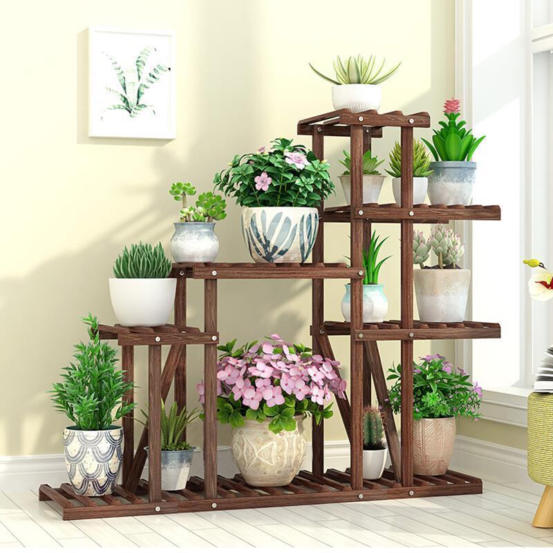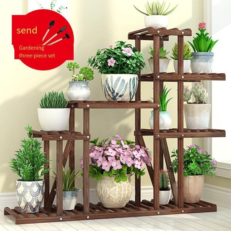 Flower Rack Solid Wood Flower Rack Floor Type Bonsai Rack Balcony Multi-layer Several Basic Flowers