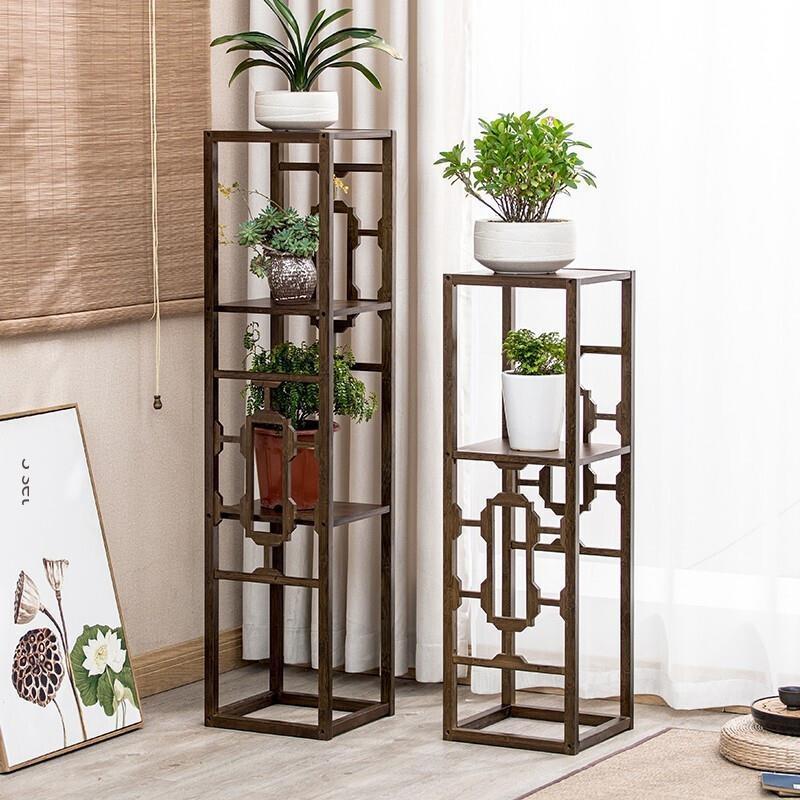 Flower Rack Solid Wood Living Room Indoor Floor Type Green Rack Flower Table Balcony Flower Rack Storage Rack Antique Walnut Color (fourth Floor)