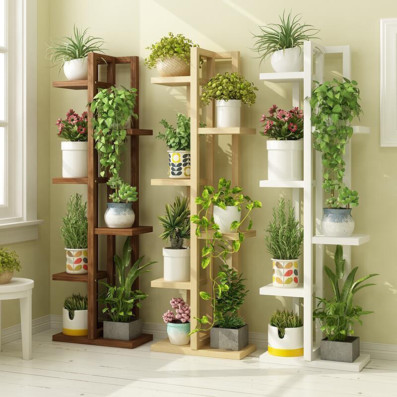 Flower Shelf Solid Wood Multi-layer Indoor Floor Basin Frame Multi Meat Green Pineapple Solid Wood Frame Carbonized Color Six Layers