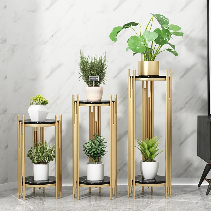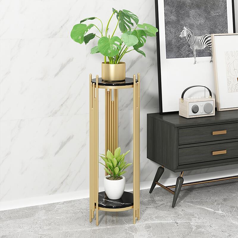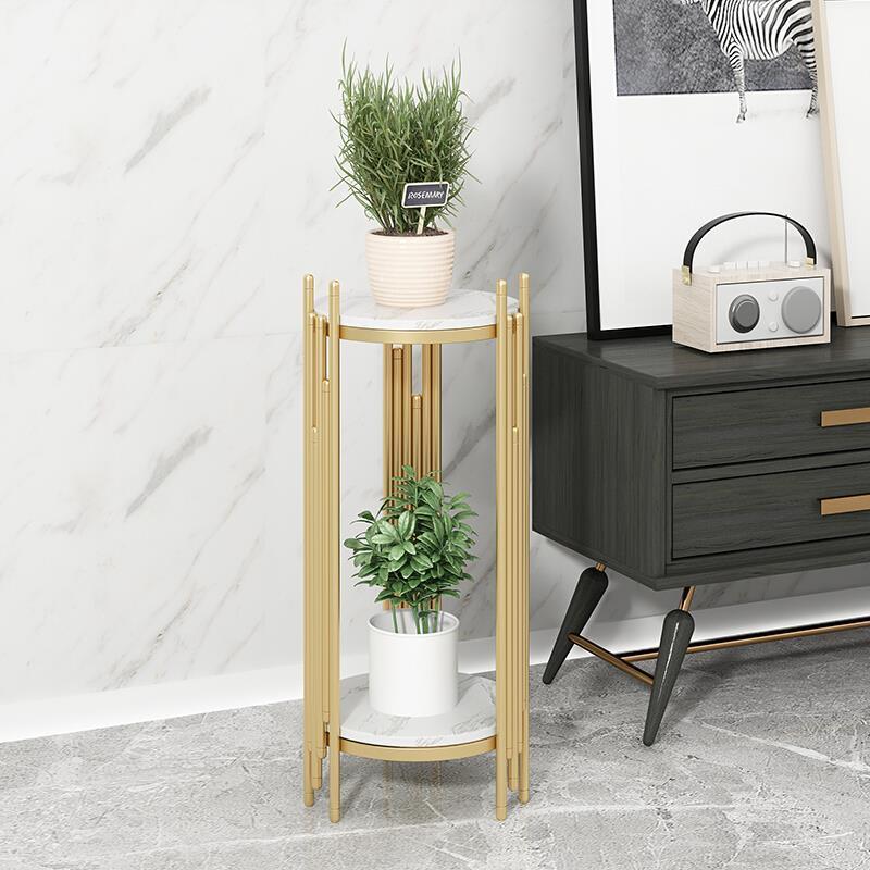 Home Nordic Flower Rack Modern Light Luxury Marble Floor Flower Rack Living Room Creative Balcony Simple Flower Rack Medium Gold (80 High) + White Marble