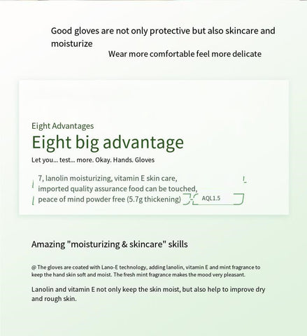Imported Peppermint Moisturizing Disposable Latex Gloves Food Grade Powder Free Rubber Inspection Laboratory Thickened 50 Pieces / Box L Size