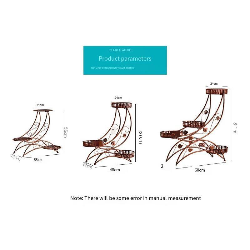 Iron Art Flower Rack Storage Flower Pot Rack Balcony Living Room Bedroom Courtyard Flower Rack Sub Medium Copper 3 Pots