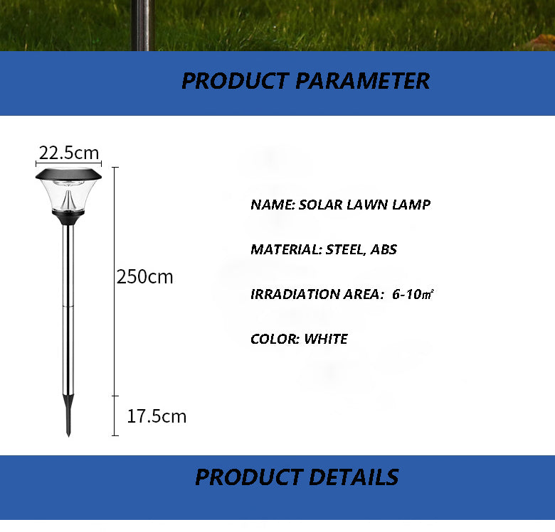 LED Solar Lawn Lamp White 2.5m Outdoor Garden Lawn Lamp Waterproof for Pathway, Walkway, Patio, Yard & Lawn