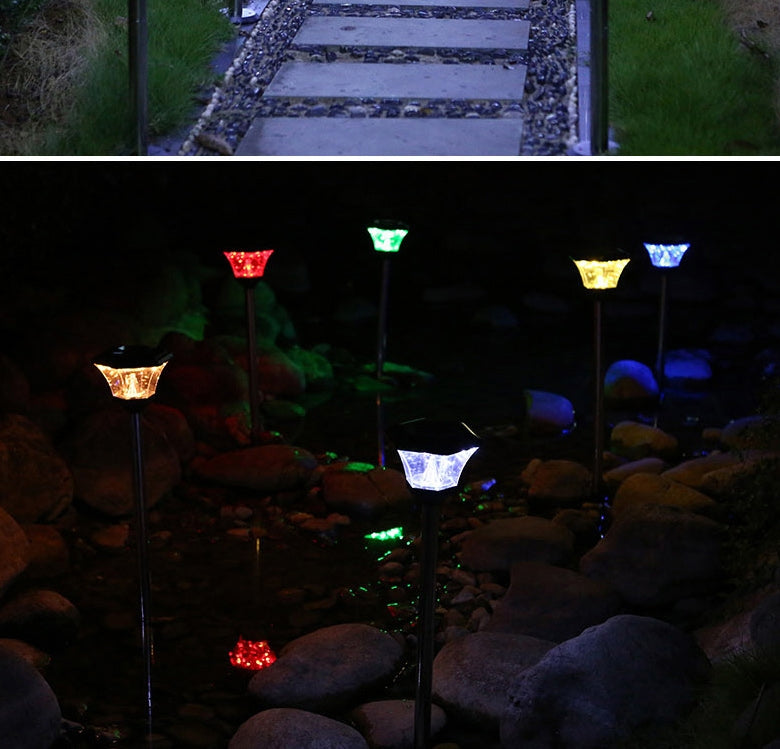 [Easy to Use] Connect the stake, pole and lamp holder. After connecting the parts of the ground stake, use a tool to dig a suitable hole before inserting the pathway lights into the lawn, and then insert them into the hole.