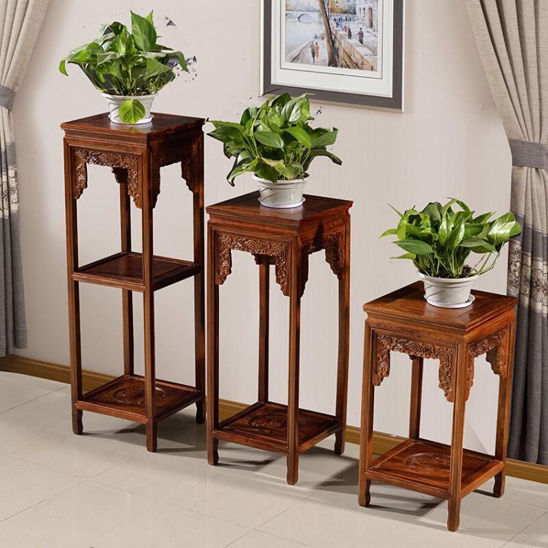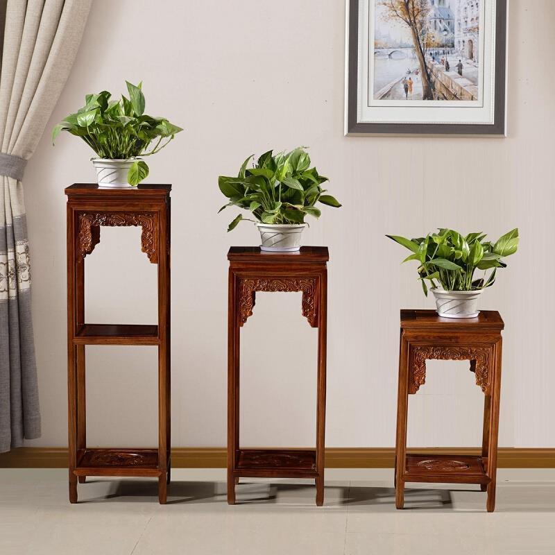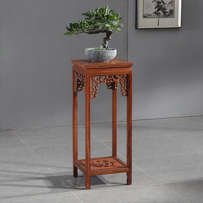 New Chinese Solid Wood Flower Rack African Pear Wood Flower Table Living Room Balcony Courtyard Antique Bonsai Rack 80cm High
