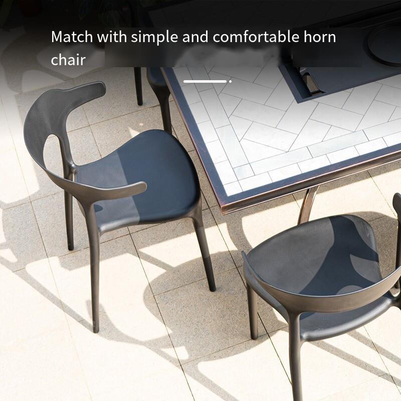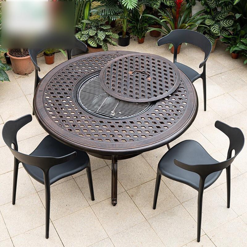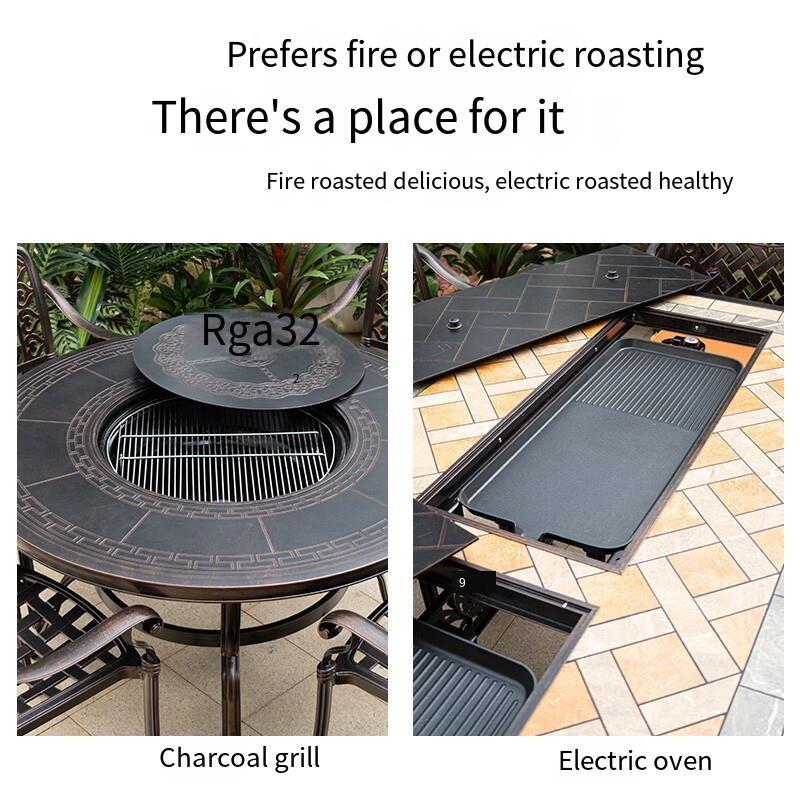 Outdoor Cast Aluminum Barbecue Table And Chair Outdoor Villa Courtyard Table And Chair Combination 6 Ox Horn Chair + 1 Aluminum Barbecue Cone 122cm