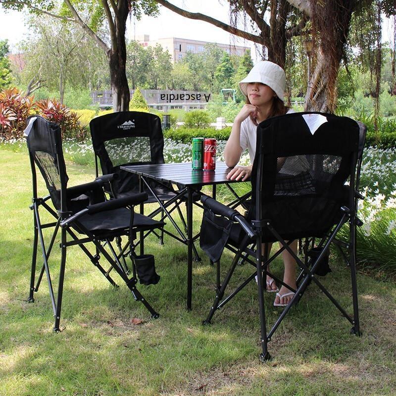 Outdoor Folding Portable Ultra Light Chair Leisure Folding Table Portable Fishing Chair One Table And Four Chairs (All Cloth Black)