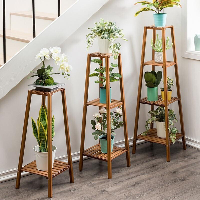 Simple European Style Creative Living Room Wooden Flower Rack Indoor Flower Rack Multi-layer Solid Wood Balcony Multi Meat Flower Pot Rack Porch Can Store Storage Rack Bonsai Rack 4 Floors