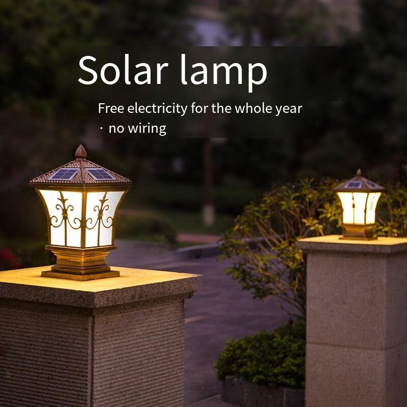 Solar Column Head Lamp Outdoor Courtyard Lamp Household Wall Lamp Waterproof Garden Villa Park Gate Lamp Solar Dual-purpose Model Remote Control