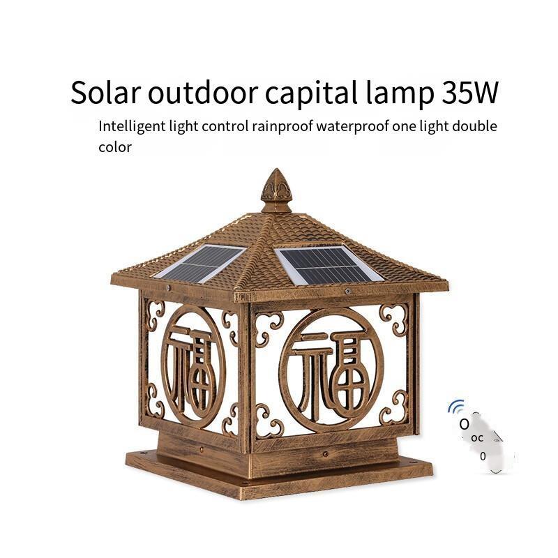 Solar Lamp Column Head Lamp Column Lamp Courtyard Lamp Chinese Garden Villa Landscape Fence Gate Column Lamp Remote Control Outdoor Waterproof Lamp 35w