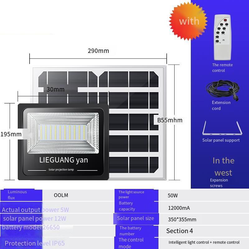 Solar Lamp Street Lamp Household Led Projection Lamp Outdoor Waterproof Remote Control Courtyard Lamp Rural Outdoor Lighting Bright Wall Lamp 50W