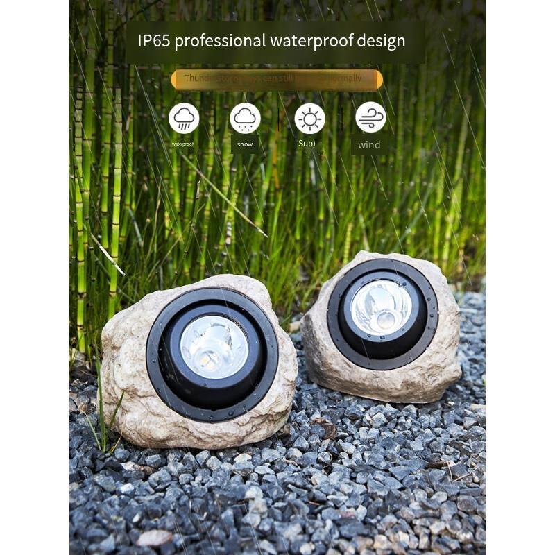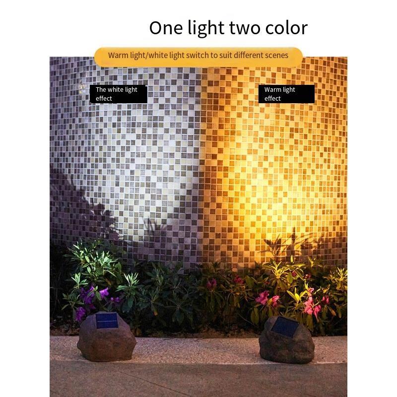 Solar Outdoor Lamp Courtyard Garden Layout Simulation Stone Small Decoration Lawn Landscape Waterproof Spotlight Basalt -- 1 Set [white Light + Warm Light]