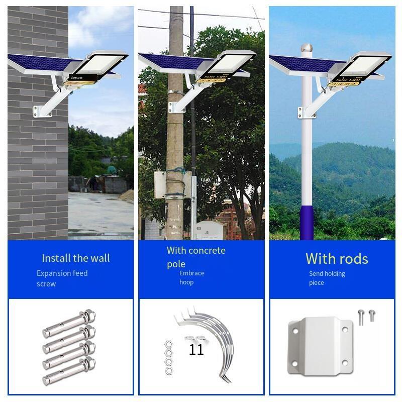 Lamps, photovoltaic panels, photovoltaic panel supports, mounting screws, remote controls, remote control batteries, instructions, after-sales cards;