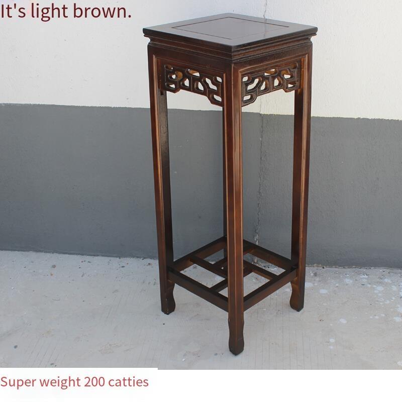 Solid Wood Flower Rack Log Chinese Antique Elm Green Rose Square Flower Table Indoor Living Room Floor Flower Rack Acid Willow Color Surface 30-30 High 95
