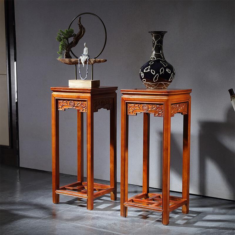 Solid Wood Flower Rack Ming And Qing Dynasties Classical Bonsai Rack Living Room Square Flower Pot Rack Flower Rack New Chinese Style Chlorophytum High Flower Several Decorative Racks Integrated Flower Rack (single)
