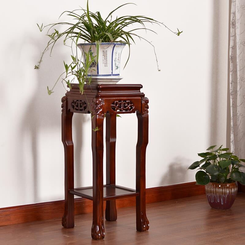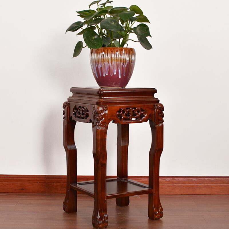 Solid Wood Square Flower Rack Antique Living Room Multi-storey Floor Type Old Elm Animal Head Flower Balcony Flower Pot Rack Length 40 Width 40 Height 60