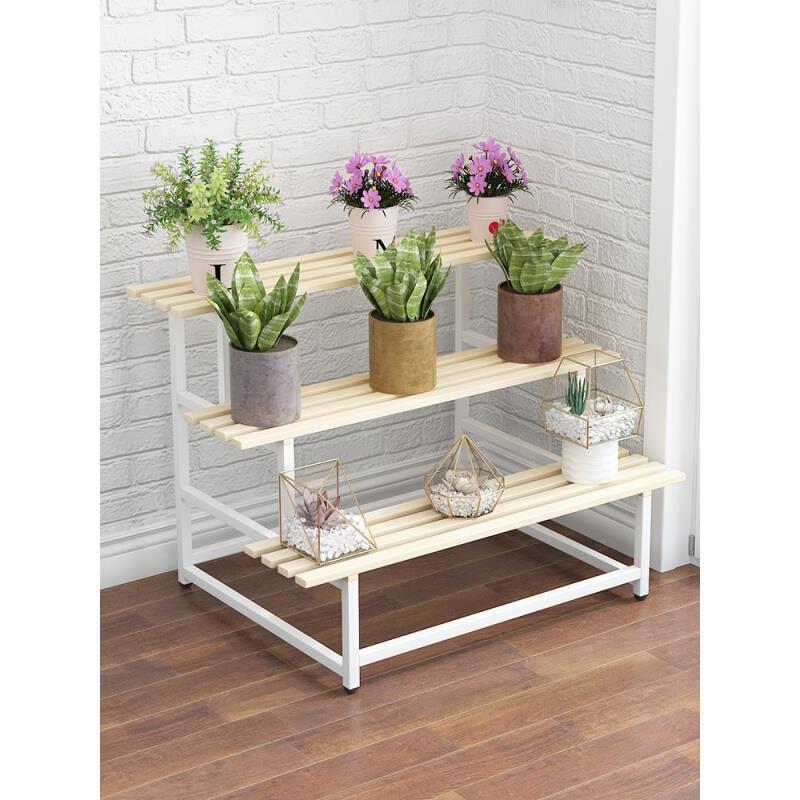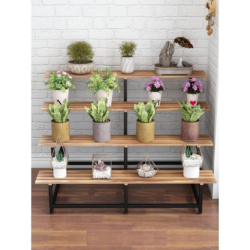 Stepped Flower Rack Balcony Rack Stainless Steel Floor Type Iron Multi-layer Thickened Four Layers 100 Long (3 Legs) Black Frame Carbonization Board