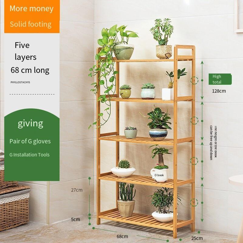 Storable Floor Balcony Flower Rack Living Room Multi-layer Wooden Flower Pot Rack Multi Meat Folding Indoor Flower Rack Storage Rack Multi-functional 5-layer Wide 68
