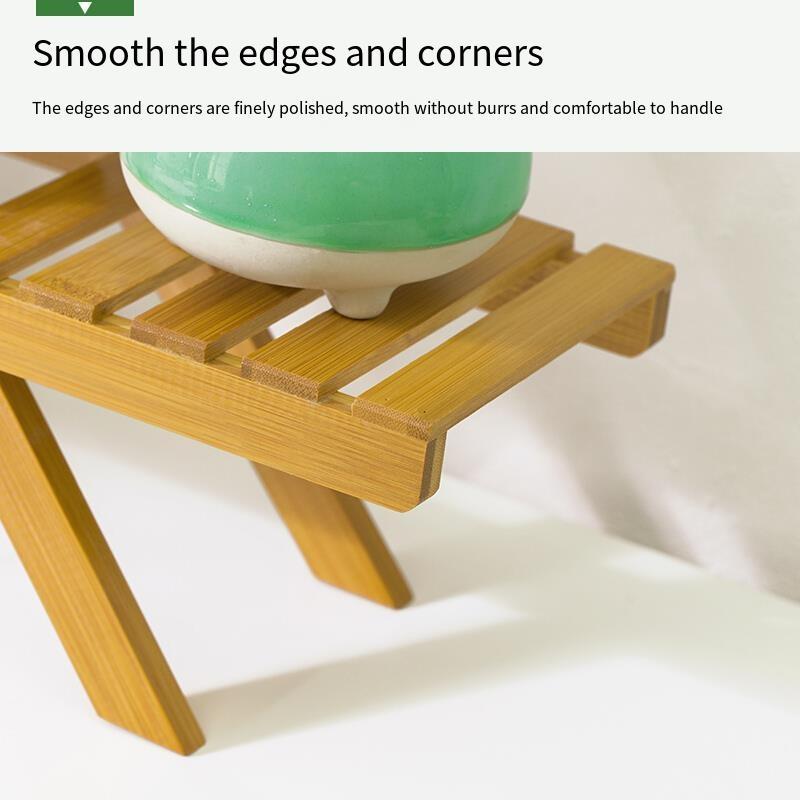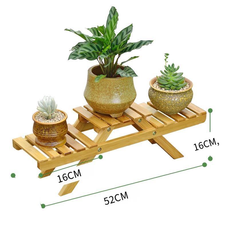 Table Top Bamboo Flower Rack Solid Wood Floor Living Room Multi-layer Folding Flower Rack Balcony Multi Meat Flower Pot Rack Storable Storage Rack Small Rack Primary Color