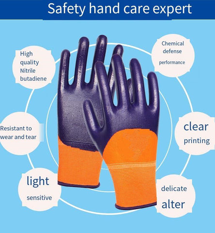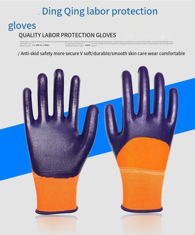 Nitrile Semi Dipped Rubber Gloves Wear Resistant Oil Resistant Acid And Alkali Resistant Protective Gloves Working Labor Protection Gloves Purple 12 Pairs M Size